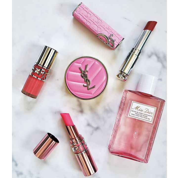 可愛いパッケージのコスメの中でもピンクのパッケージには心惹かれます。YSLのラブシャイン キャンディ グロウバーム1Bとオイルグロス2、メイクミーブラッシュ42は再入荷を待って購入した最近のお気に入り。一番よく使うディオールのアディクト リップスティック 682は専用のケースでさらに可愛く。ミス ディオールのハンド ジェルはコロナ禍以来欠かせません。