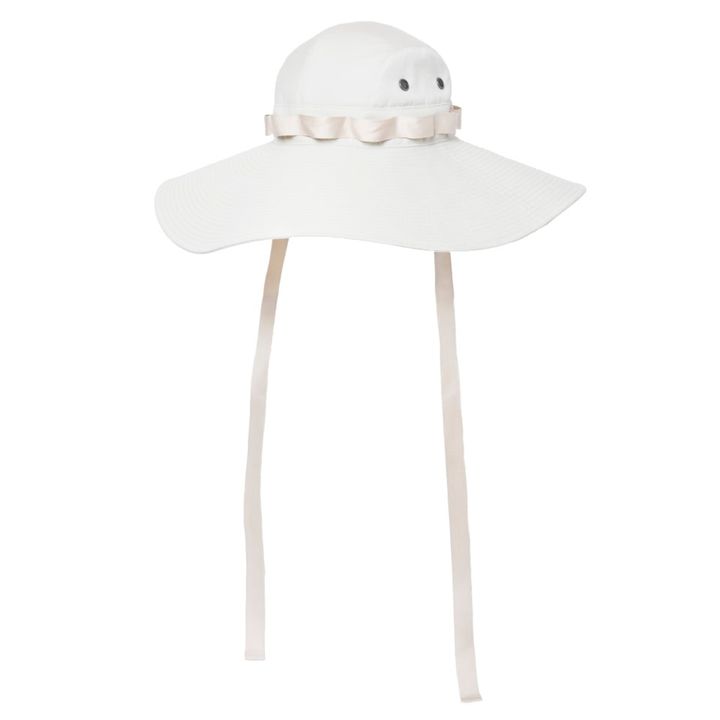 数多くのファッション誌で活躍中の人気スタイリスト、金子綾さんがディレクションを務めるブランド、クードルにもおしゃれなブリムハットを発見! バケットハット風のカジュアルなデザインながら、ご本人曰く「無駄に」(笑)長く太めにしたリボンテープでスポーティ過ぎず大人っぽくかぶれるようにしたのだそう。リボンテープは垂らしたり結んだりとアレンジを楽しめるだけでなく、使わないときはクロスボディにして手ぶらで持ち歩けるようになっているのも便利。