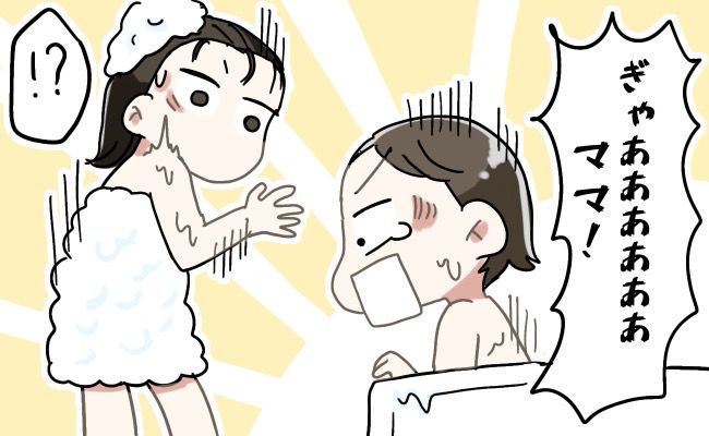 子どもと一緒にお風呂に入っていたときのことです。私がシャワーを浴びていると、いきなり子どもが「ぎゃあああ! ママ!」と叫びました。驚きどうしたのか尋ねると……。