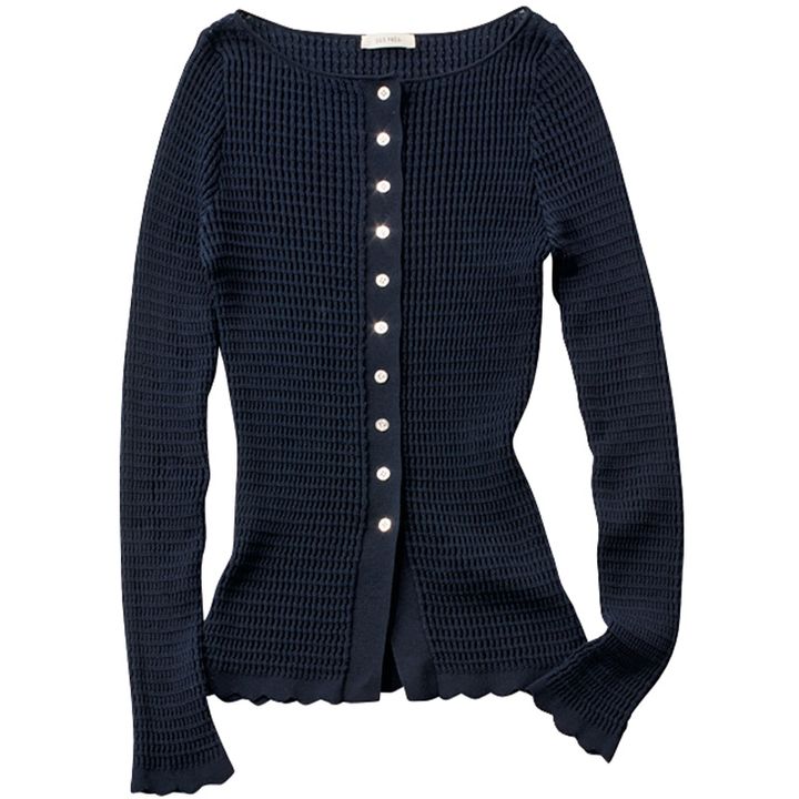 ポコポコと表情のある生地は、シンプルだけど着映える。 カーディガン¥28,600(デ・プレ)