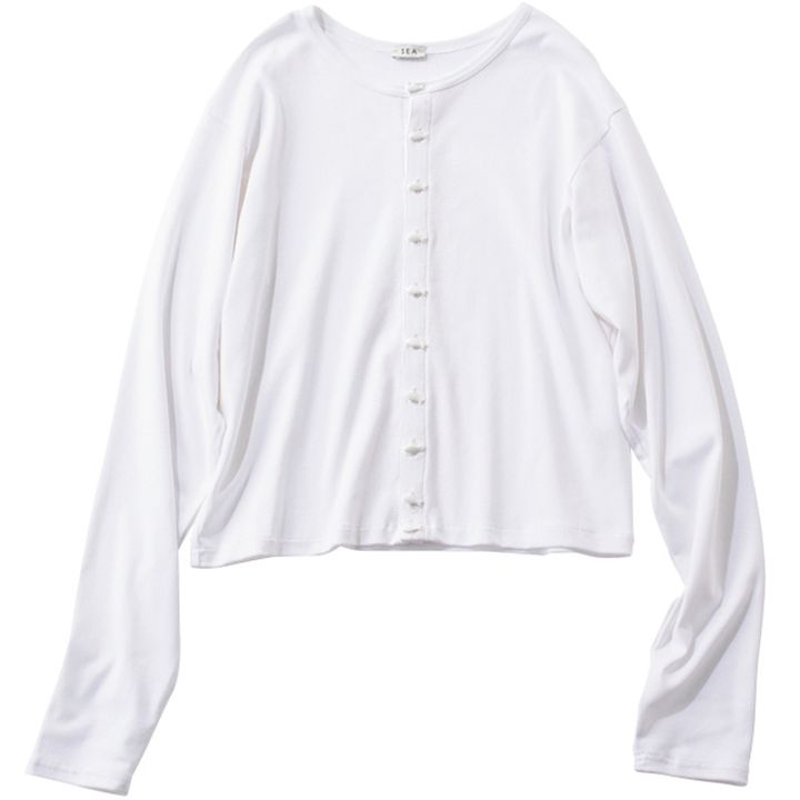 ❝短丈Tと同バランスでも フロントボタンで表情豊かな トップス気分のカーデ❞