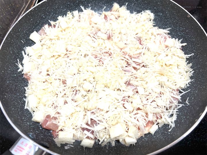 3. 【カリカリな衣…実は“えのき”だって!?】刻んだえのきまみれの鶏肉を焼く!「揚げない唐揚げ」作ろう!