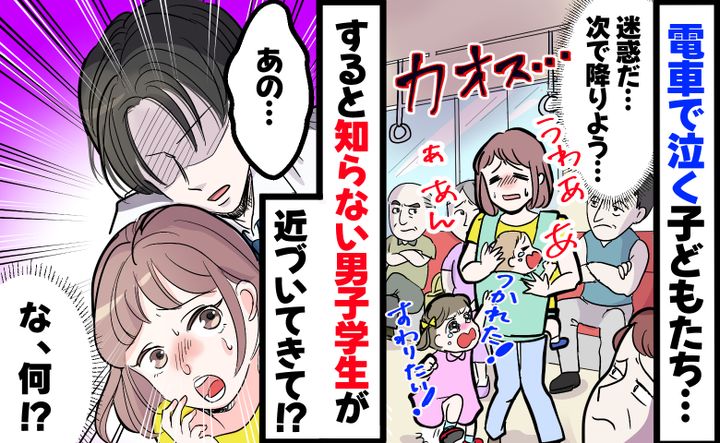 電車で泣く子どもたち「迷惑だ…降りよう…」男子学生が近づいてきて鞄をゴソゴソ…な、何するつもり!?
