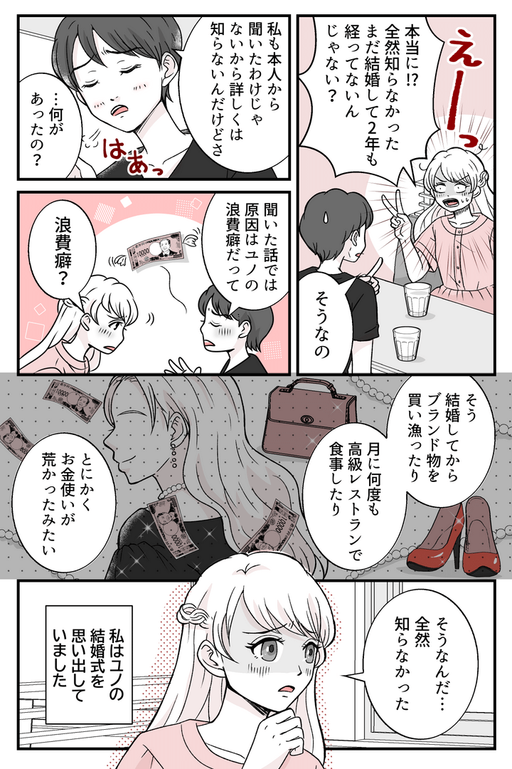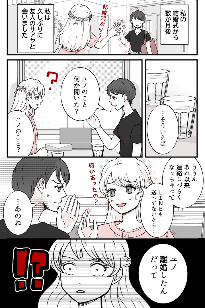 結婚式から数か月後、サアヤとの再会で、ユノの離婚を知らされた私は衝撃を受けました。