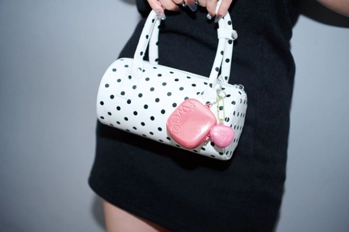 白のレースソックスやドット柄のバッグ、そんなキャッチーなアイテムで無敵なガールズパワーを チャージ。ちょっぴりギャルなネイルで完成♡
