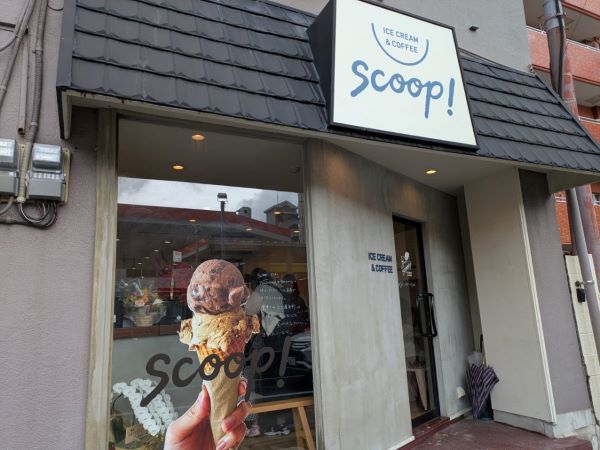 6月14日にオープンしたのは、「SCOOP! ICE CREAM&COFFEE」(スクープ!アイスクリーム アンド コーヒー)」というアイスクリームショップ。福岡市地下鉄空港線西新駅から徒歩10分弱。早良街道の祖原交差点を東側に入って2つ目の建物です。