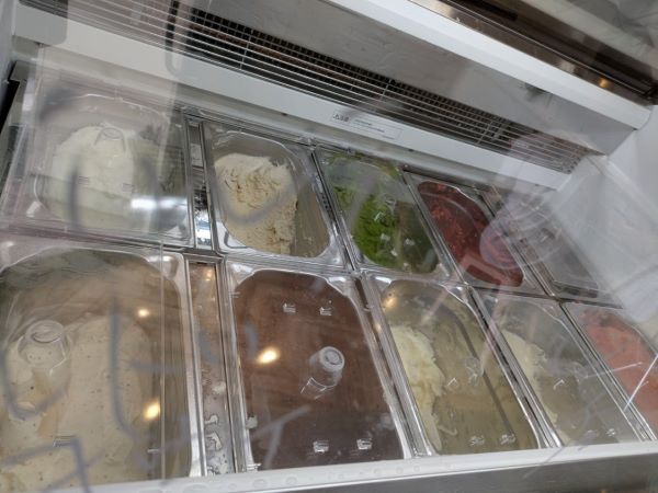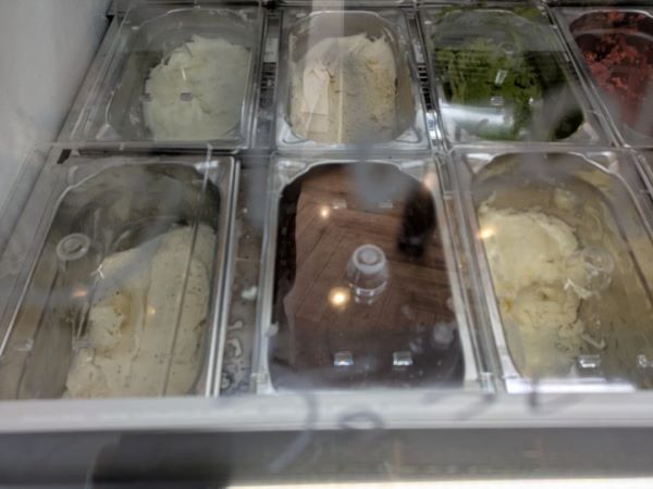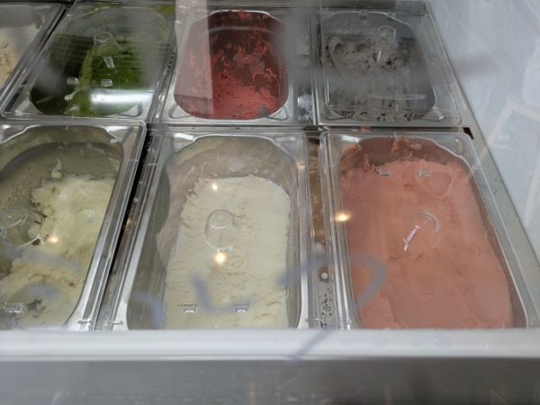 早速ショーケースの中を見てみると、アイスクリームが全体的に柔らかな色味で、一般的なアイスクリームとは一味違った印象です。というのも、これらは全て香料や人口着色料は不使用なのだそうです。