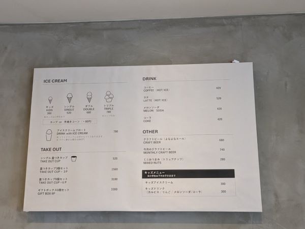 サイズは、キッズ(小学生以下)(300円)シングル(520円)ダブル(680円)トリプル(780円)の4種類で、カップか手焼きコーン(+80円)が選べます。手土産用のふたつきカップもありますよ。