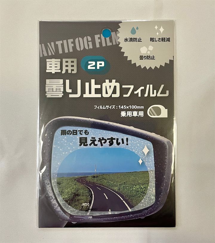 窓ガラスはこちらの超はっ水ガラスコートで撥水コートをして、サイドミラーは曇り止めフィルムを貼っておく、というのでも良さそうですね。