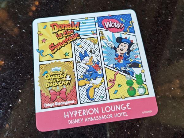 ハイピリオン・ラウンジには、デイジーダックをモチーフにした、このケーキセット以外に、6/30(月)まで東京ディズニーランドで開催中のイベント「ドナルドのクワッキー・ダック!ダック!ダックシティ!」をテーマいしたスペシャルメニューの第二弾もお目見え。