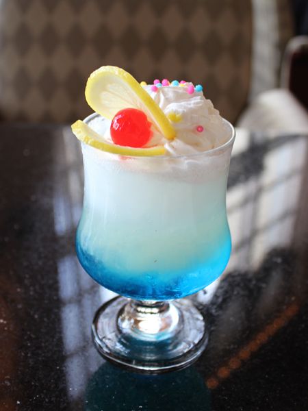 グレープフルーツジュースに、ソーダ、ライチシロップ、ブルーシロップをミックスしたドリンク。