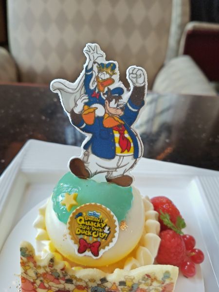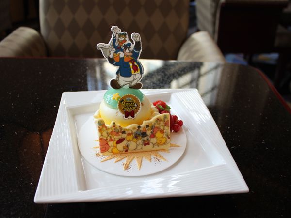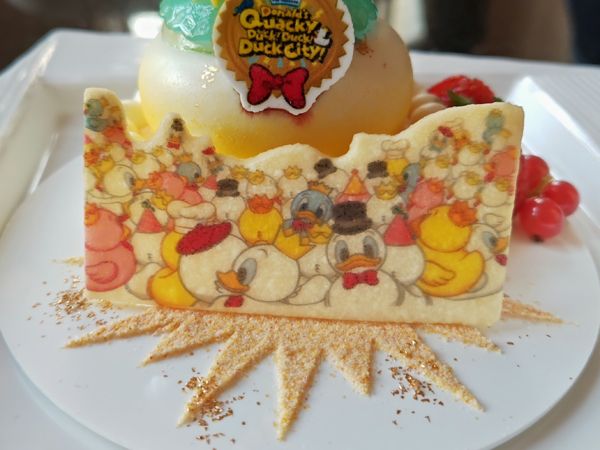 ゼリーの上にはドナルドと、ライバル・ピートが描かれた砂糖菓子、前にはドナルドのファンであるクワッキー・ダックが描かれたクッキーが置かれ、目でも楽しめるスイーツに。
