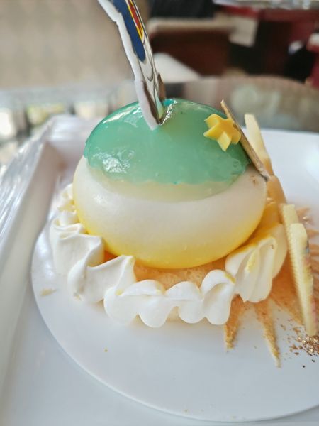 その表面には柑橘系のブルーキュラソーシロップゼリーを乗せた一品。