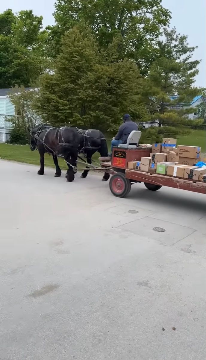 動画が撮影された場所は、アメリカ・ミシガン州マキナック島。 この島では、一体どのように荷物が配達されているのでしょうか?
