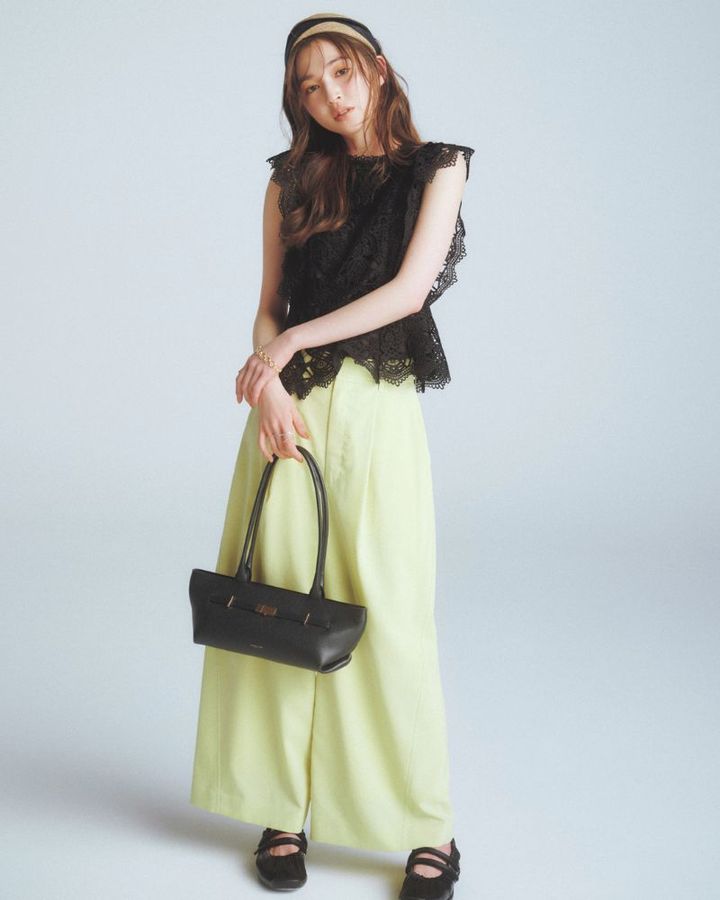 6月27日(金)、夏らしさが漂うキレイ色のパステルカラーを大人っぽく着こなすなら、断然黒と合わせるのがおすすめ。細部に黒の分量を多めにしても抜け感や奥行きのある素材を取り入れると、重たく見えずあか抜けます。トップスはレース付きで色気を効かせつつ、バレエシューズでパリっぽく。甘すぎないよう、レザーバッグで辛口に引き締めるのがコツです。