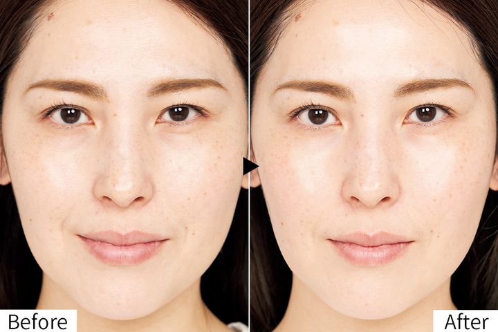 くるくると指先でマッサージした後、顔に残った美容液をふきとると、肌が潤ってツヤ感も明るさも出てきました。炭酸の作用で血行がアップし、時間が経つほどシュッと引き締まった印象に。