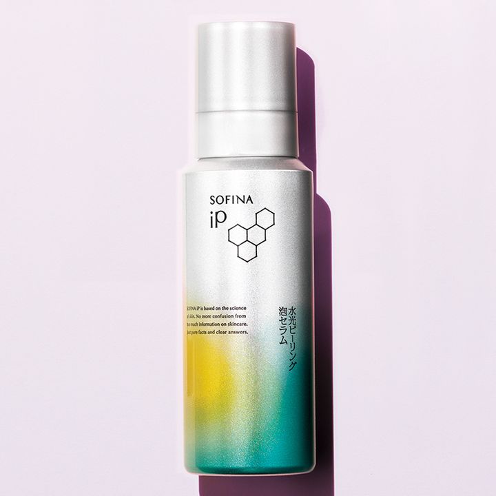 炭酸泡の美容液が肌の上で密着。肌負担を徹底的に抑えながら古い角質をふきとり、保湿成分が浸透。ソフィーナiP 水光ピーリング泡セラム 120g ¥4,290〈編集部調べ〉(花王)