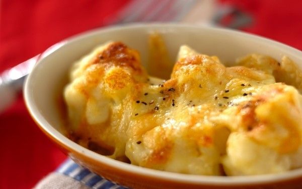 淡白なカリフラワーが、カレーマヨソースとチーズの力で一気にコク旨おかずに。ホクホクとしたカリフラワーの食感に、チーズの香ばしさとスパイスの風味が絶妙にからみ、後を引きます。まろやかな味わいで、お子様でも食べやすい一品ですよ。