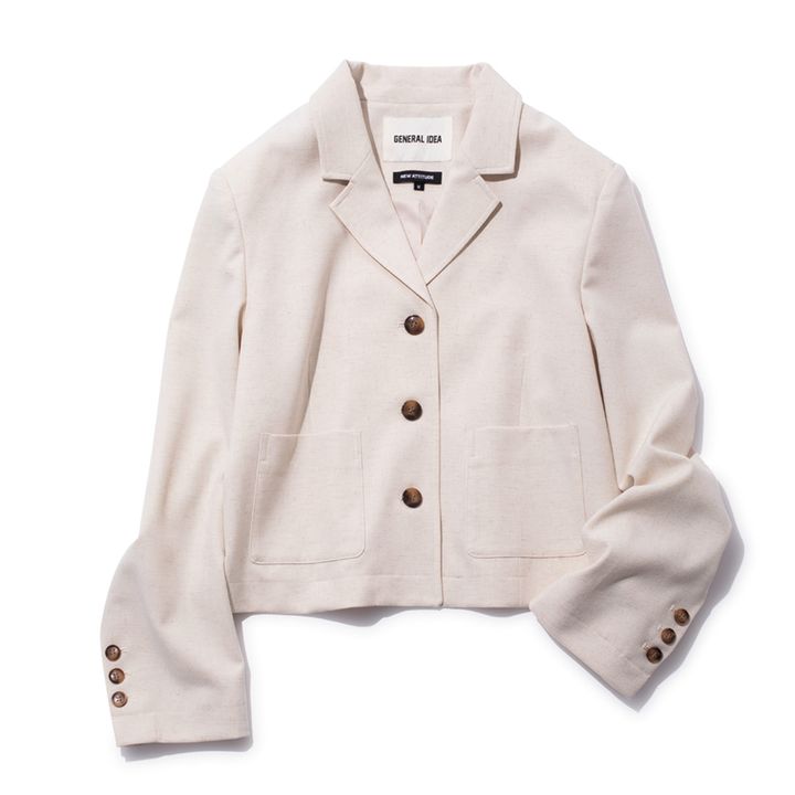 コンパクトな短丈ジャケットはデイリーにも使いやすい最旬アイテム。コスパよくトレンドをキャッチできる注目ブランド。¥11,850(GENERAL IDEA)