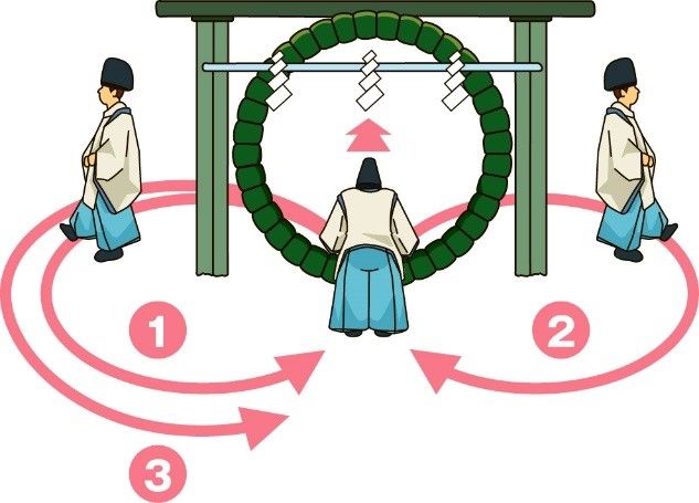 それは「茅の輪(ちのわ)」と呼ばれるもので、8の字を描くように3回くぐり抜ける 「茅の輪くぐり」を行うことで、厄が落ち、身が清められるといわれています。
