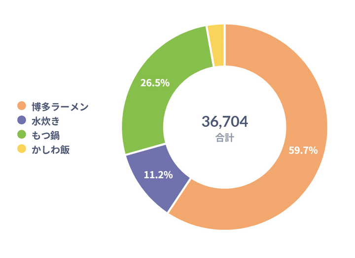 地元だけでなく全国にもファンが多い「博多ラーメン」が堂々の1位。とんこつスープのコクと、替え玉が人気ですね。