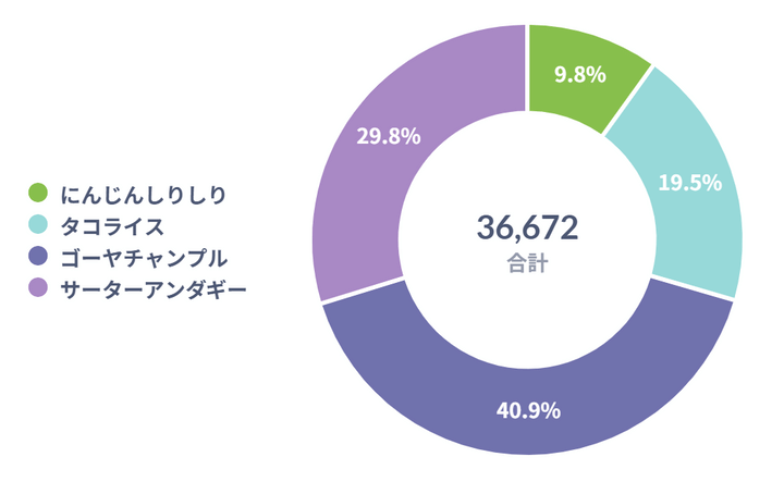 ほろ苦いゴーヤとふんわり卵の組み合わせがクセになる、ゴーヤチャンプルが1位を獲得。2位は、腹持ちがよく、どっしりとしたおやつ「サーターアンダギー」でした。