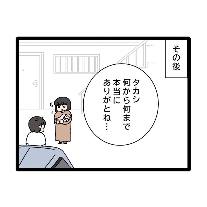 産院に「お父さん」として付き添い、「姫、がんばれ!!」と応援するタカシさん。無事に元気な女の子が生まれてホッとした後、退院の日にはきみこさんを自宅まで送りました。こんなタカシさんの優しさに触れてしまったら、「私、本当に本当に最低だった」と謝罪するのも当然ですよね。