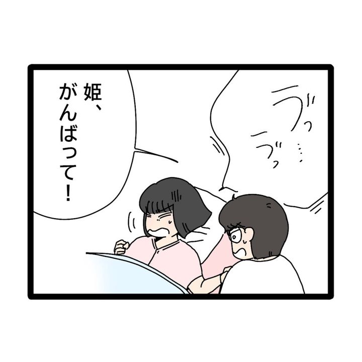 「う゛っ・・う゛」と唸るきみこに、「姫、がんばって!」と声をかけました。