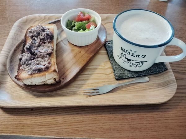 嬉しいあずきトーストとサラダのセットです!