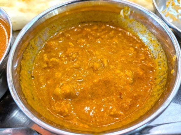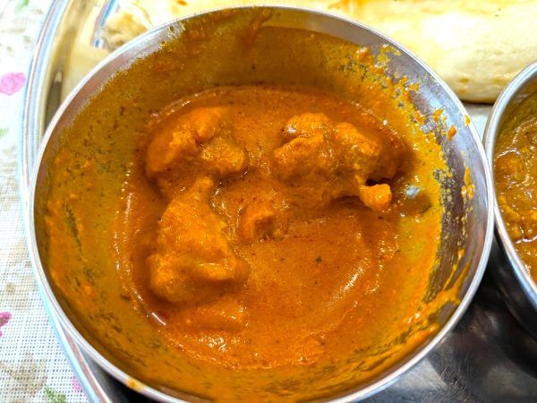バターチキンカレーは、トマトと濃厚なバターの芳醇な風味がいいですね~。チキンが先程の手羽先と違って、柔らかいです。大きくてプルンとしています。バターチキンカレーもキーマカレーもおいしいです。