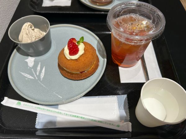 実はニュージャーマンはモロゾフのグループ。だからこそ普段は手土産で出会う2つのブランドも、店舗で味わえるんです。可愛いプレートになって特別感がありますね。