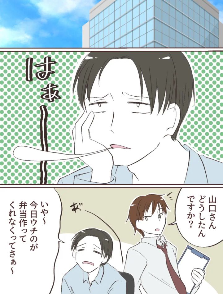 「山口さん、どうしたんですか?」後輩にそう聞かれ、「あ゛ーー。いや~今日ウチのが弁当作ってくれなくってさぁ~」と答えると、