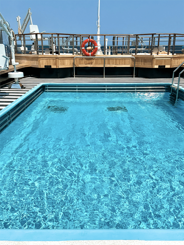 リド・プールの周りには、サンベッドやカバナ風のスペースが並んでいてリゾート感もたっぷり。エレガントな船内とはまた違う開放的な雰囲気が味わえます。プールサイドでは、ドリンクやカクテルを楽しんだり、ランチタイムを過ごしたりするのもおすすめ。