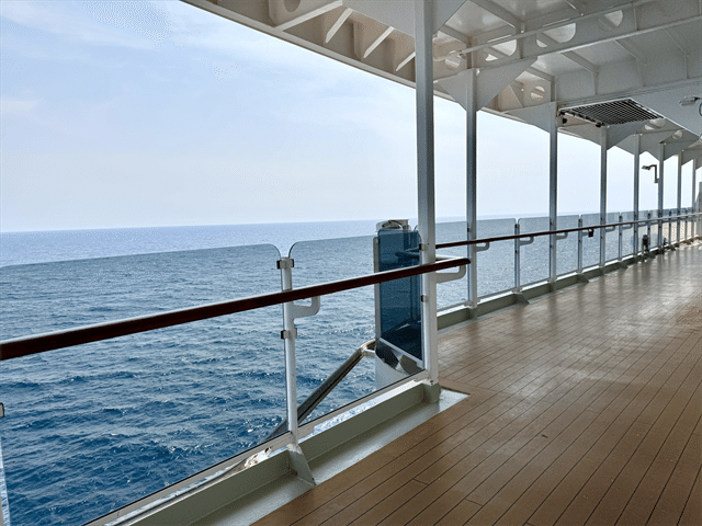 航海日は運動量が少なくなりがちなので、デッキをひたすら歩いて体を動かすというのもアリです。もっと動きたい人は、ジムで運動するのも◎。