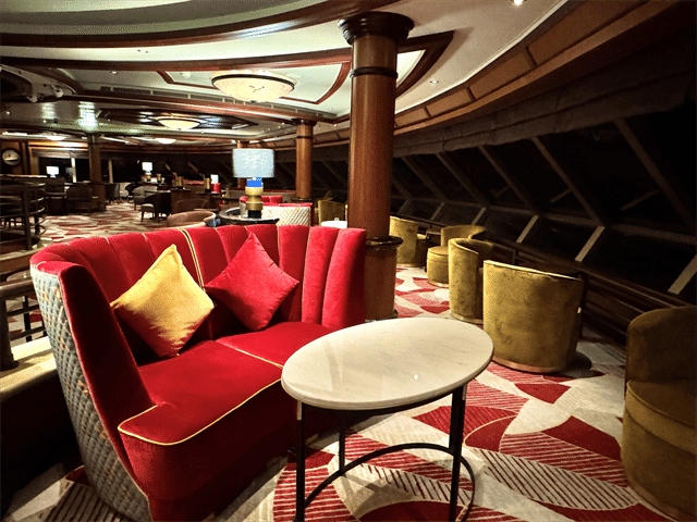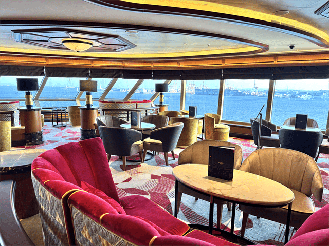 キュナードの最上位の船長に与えられる特別な称号「コモドアー」をイメージして作られたバー。昼とはガラリと雰囲気が変わる、夜の時間帯は大人だからこそ楽しめるしっとりとした美しい空間です。