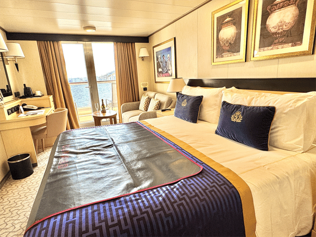 クラシックで上品な設えの客室は、船内と思えない造りと広さ。潮風を感じられ、変わりゆく景色をいつでも眺められるバルコニー付き客室を選ぶのが断然おすすめです。