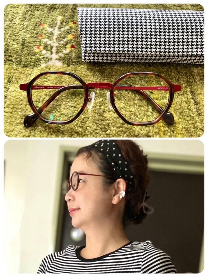 海外のメガネのデザインをイメージされているそうで、国内ブランドの分、少し手の届きやすい価格設定にしているとのこと。私は24種類の中から八角形のフレームで”哀愁のザクロ“というネーミングの茶×赤色を選びました。大人世代の自然体ファッションに合わせてもおしゃれポイントになってくれそうです。