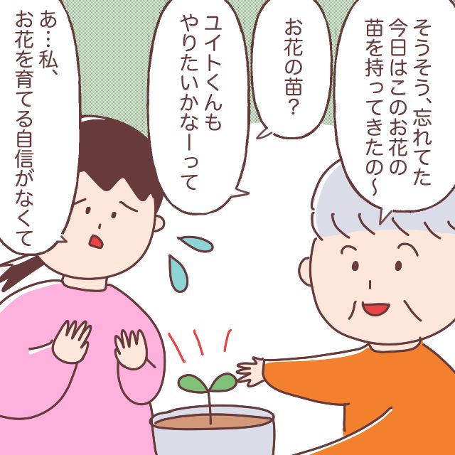 「私、お花を育てる自信がなくて」と困りましたが「ユイトくんもやりたいかなーって」と、絶対に引き取る気はない様子。
