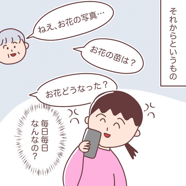 それからというもの、毎日毎日お花の写真、様子、どうなった?とメッセージしてくる義母にイライラが募りました。どうして私がお花の観察記録を義母に送ることになってるの!?私は作戦を思いつきました。