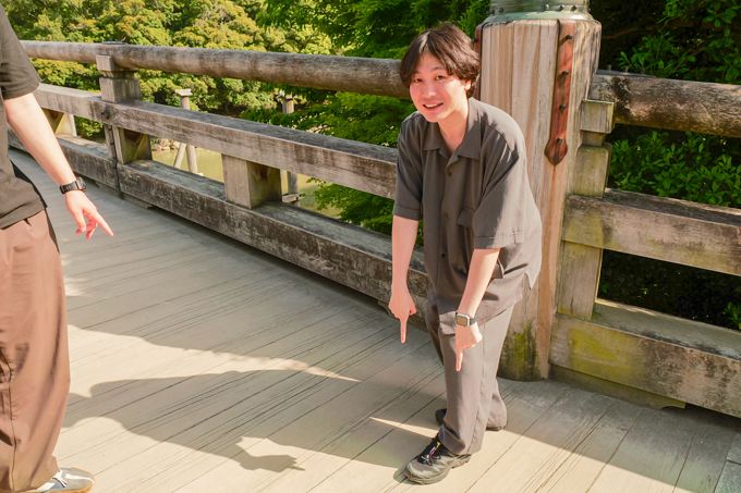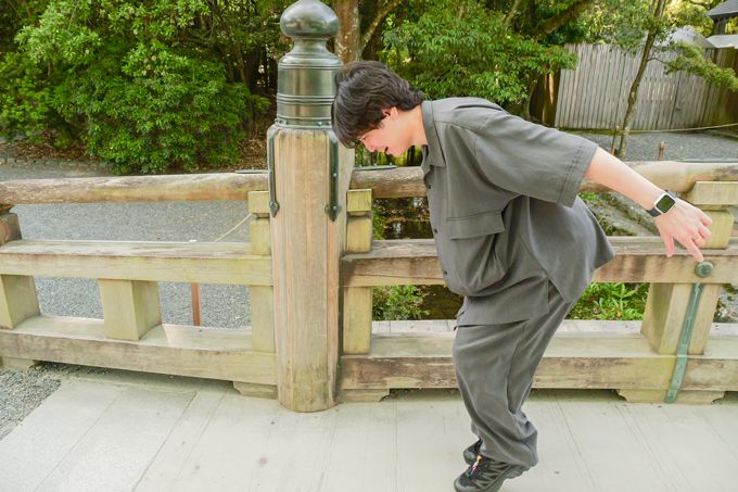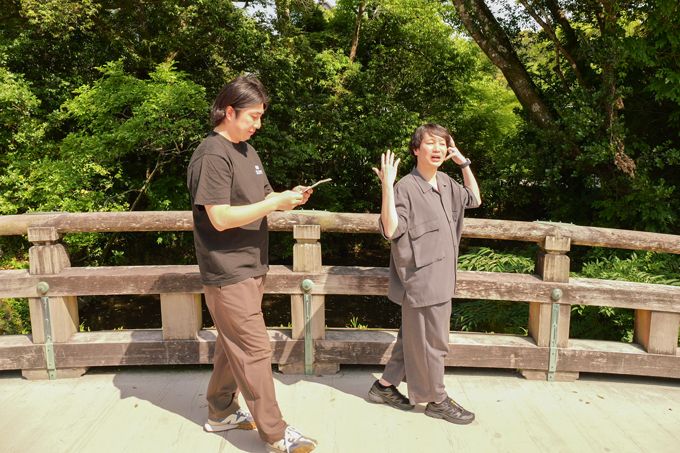 寺内:小林さんが焦りすぎなの! 神聖な場所で焦るのは良くないよ(笑)。ちなみに、宇治橋の約600枚の敷板は、木造船の船底を造る「すり合わせ」という技法が使われていて、雨水が橋脚にかからないようになっています。