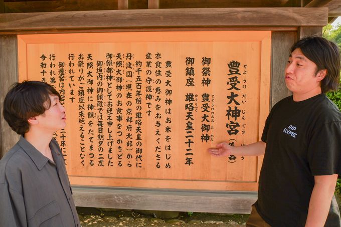 小林:はい! あそこに説明が書いてある看板がありますね。この「豊受大御神(とようけのおおみかみ)様」が外宮の神様ってことですか?