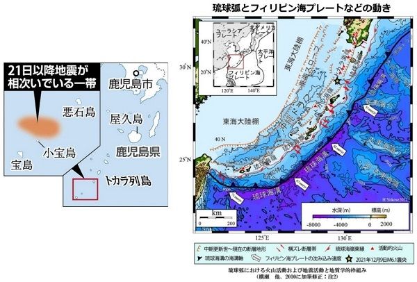 ――トカラ列島近海の群発地震については、2021年12月に発生した時にも取材して記事(https://www.yomiuri.co.jp/choken/kijironko/cksocialsports/20211214-OYT8T50006/)にしています。今回の群発地震も同じメカニズムで起きていると考えていいのでしょうか。