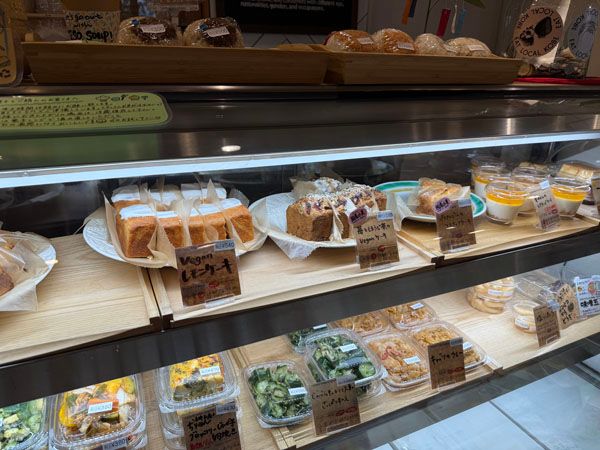 デリやスイーツが充実!味噌玉もありました。 カフェスペースでイートインもできます。 ショーケースの最上段にはおにぎりなどのご飯系、上段はスイーツ、下段はデリがいっぱい!とってもおいしそうです。なお、お昼頃に行かれる方は、日替わりで提供されるランチ「神戸野菜の日替わりランチ」も大人気ですよ。