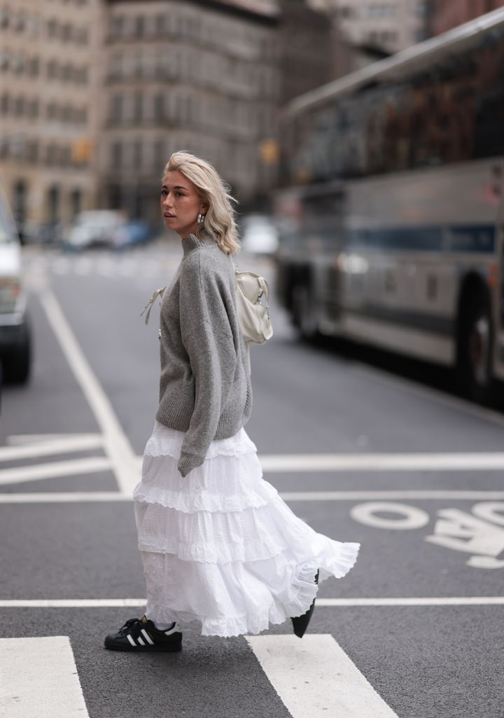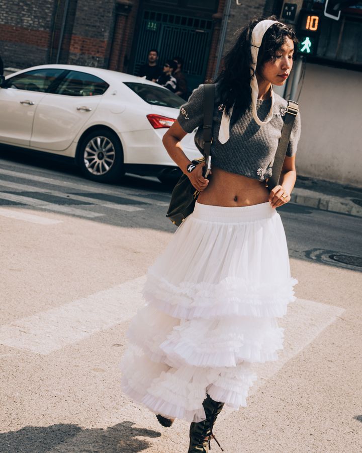 そんな“新しいボーホー”の象徴が、進化したティアードスカート。透け感やレイヤードで軽やかに仕上げたロングシルエットは、ストリートでも主役級。一枚でさらりと着るだけで、今っぽさを纏えるのが魅力だ。
