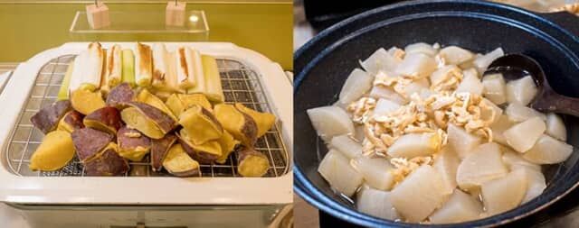 サツマイモや長ネギの焼き野菜、出汁が良く染みた「大根柚子風味」など、素朴な料理ながら味のいいメニューがありました。