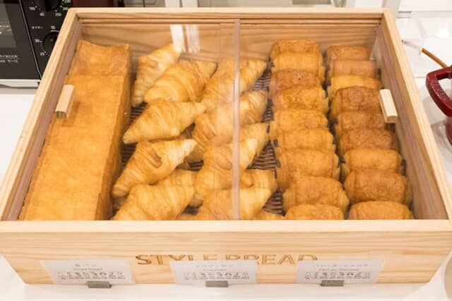 ▲パンコーナーの食パン、クロワッサン、パン・オ・ショコラ