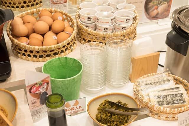 千葉県産「天女の赤たまご」はビタミンEが通常の約8倍も含まれる栄養満天なブランド卵。ヒゲタ醬油とともに卵かけご飯もおすすめです。もちろん玉子のせ海鮮丼も作れます。