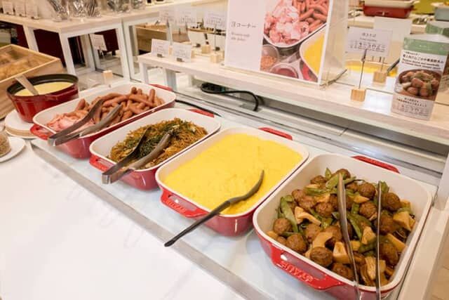 洋食コーナーにはベーコンやソーセージ、スクランブルエッグ、焼きそばなど、温かい料理をそろえます。
