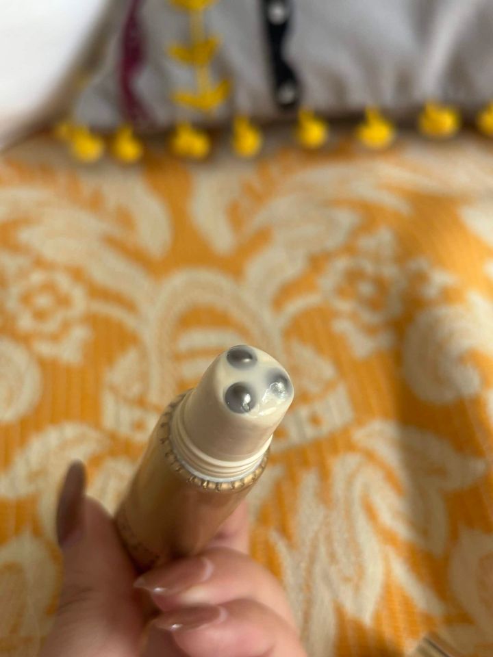 そのままクルクルしてもいいし、メイクがヨレるかもって思う場合は手に取ってポンポンって目元に置くとバッチリだよ♡ 目元だけじゃなく、ほうれい線やおでこのシワにも使えて、毎日手放せなくてバッグの中の必需品になってる。