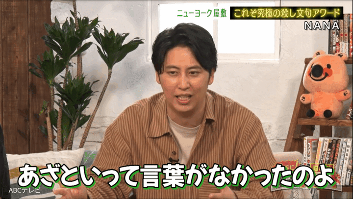 MCのニューヨーク、ゲストのAぇ!groupの小島健、浅川梨奈、ぼる塾あんりらが「これぞ究極の殺し文句アワード」「その場には絶対いたくないシーンアワード」などの部門別におすすめの漫画を紹介した『勝手に!漫画アワードNEO』(ABCテレビ)は、TVerでも無料配信中。